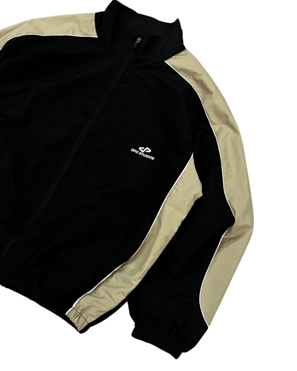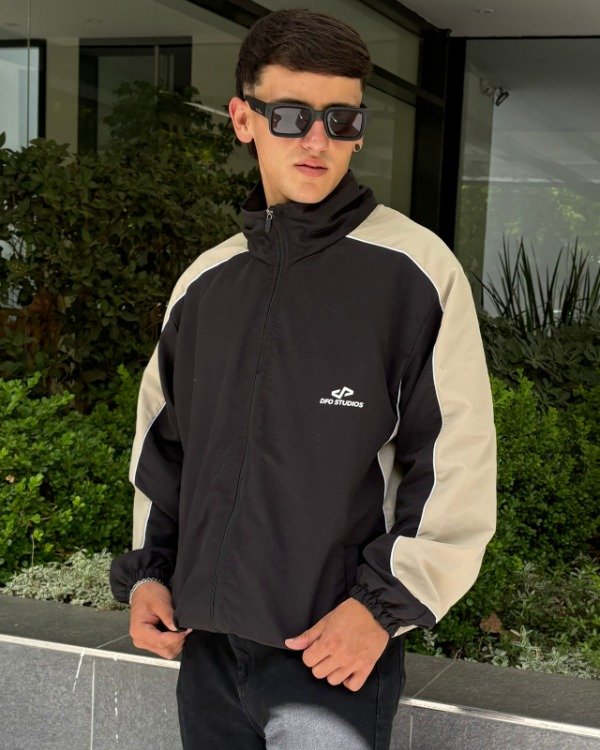 compera rompeviento forrada, negra combinada con cuello