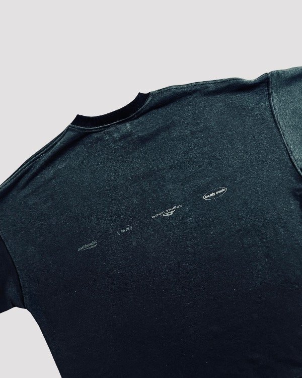 Buzo de algodón cuello redondo, con estampa frente y espalda, con pequeño desgaste en sus puños.