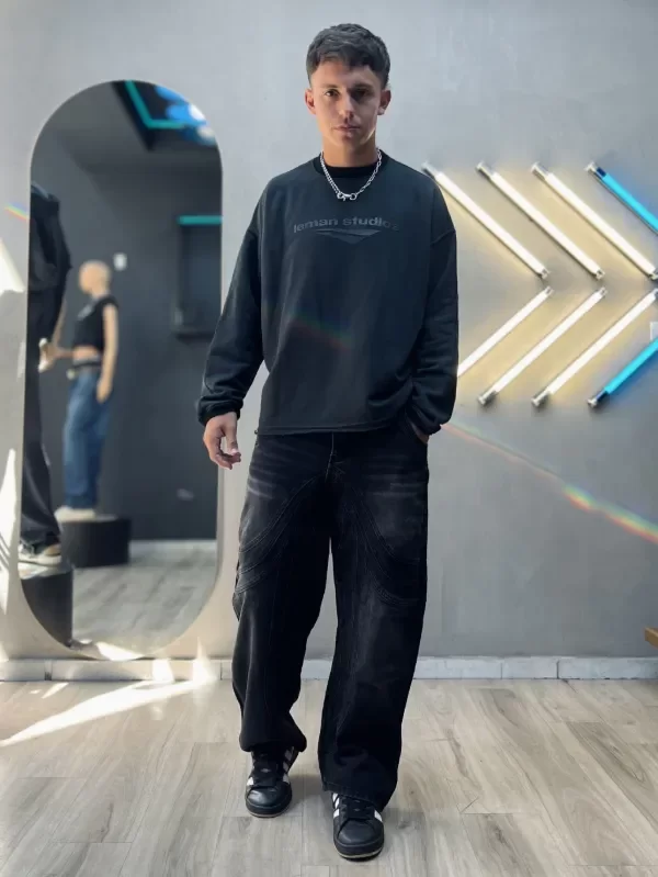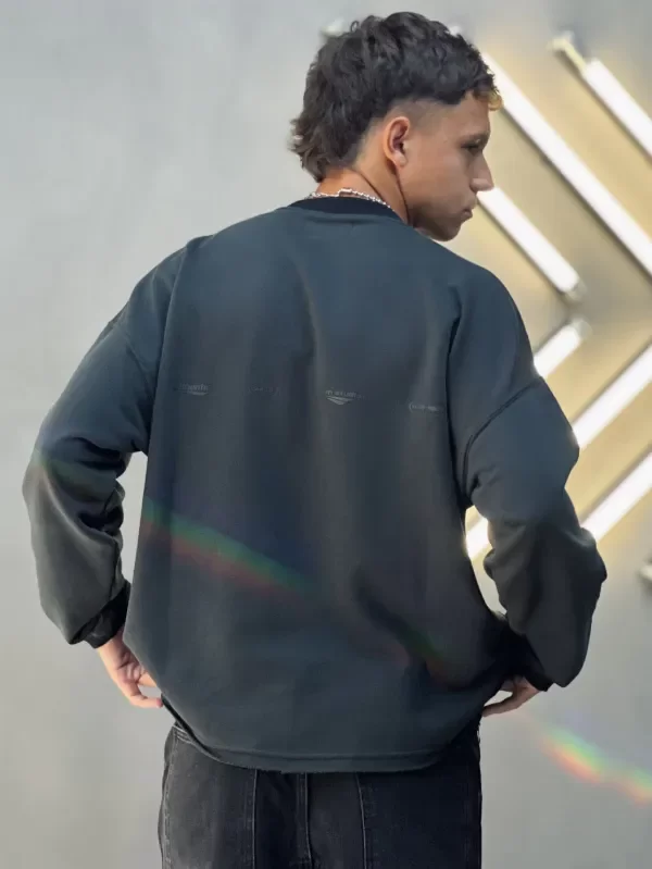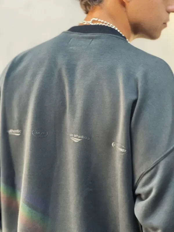 Buzo de algodón cuello redondo, con estampa frente y espalda, con pequeño desgaste en sus puños.